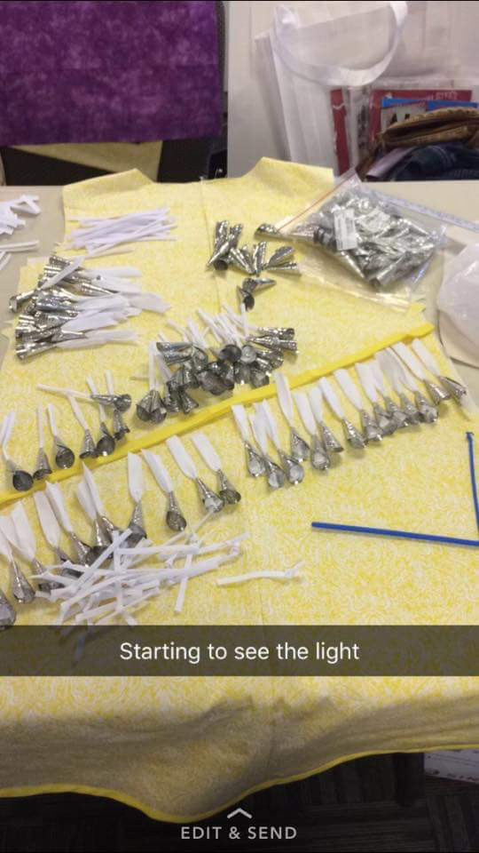 Here we are making my niece’s juggle outfit. These words mean sometimes when everything is okay or when I am sober I start to see the light at the end of the tunnel.
