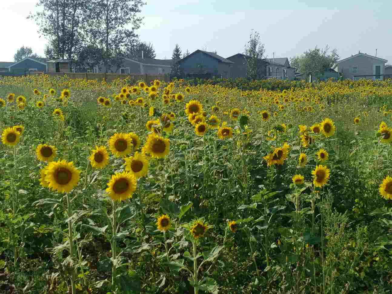 This sunflower patch was planted by a neighbor in Abasand just to give people a different narrative from their house burning. It gives them something beautiful to see and look at in the community.
